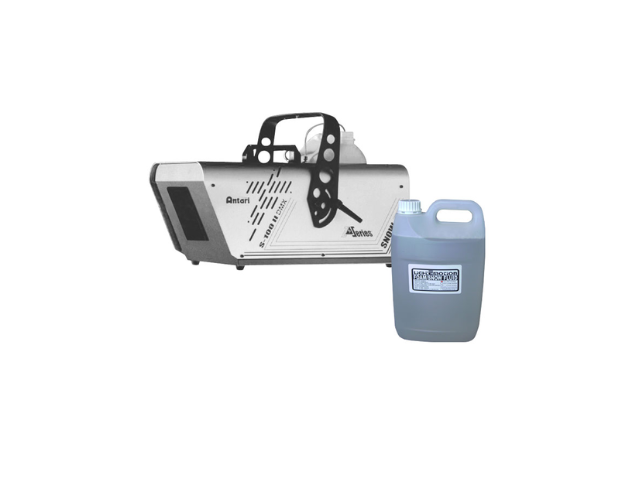 High pressure,large output “snow” machine with built in blower and a large spread. Great for theme parties,Xmas events,music videos,and applications in film and television. 5 litres of Snow fluid will last approximately 23 minutes if used continously. Extra 5 litre containers of Snow fluid can be pruchased for $45 (SL5B)