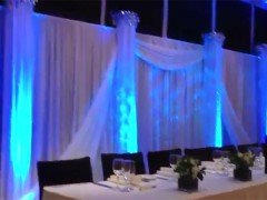 These special LED lights | when projected onto your venue walls | deliver a beautifully convincing ‘sunlight over the water’ effect that will leave your guests awed and speechless. This shimmering blue is the perfect backdrop to the wedding podium | and will bring a delicate mystical touch to the occasion. See our video below for an example of this water effect in a wedding venue.